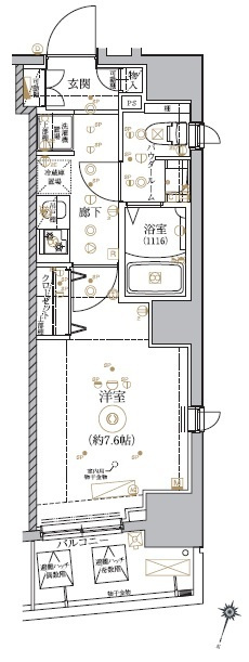 K 2.0帖/洋室 7.6帖 - 向き